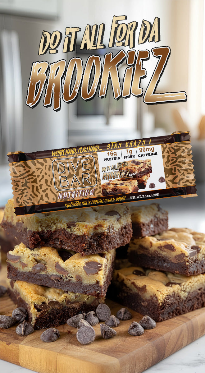 Rich protein brownie batter with mini PB chips collides with the classic cookie dough that you CRAVE !